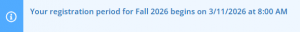 This date will show in student planning if you have a priority registration date in the upcoming term. The date and time will show in the specific term within student planning. This date will be the earliest time you can register.